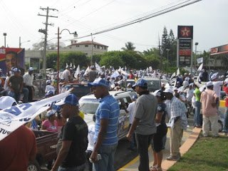 Al ritmo contagioso del merengue, miles de seguidores de los candidatos marcharon por las calles de Moca recorriendo los principales barrios y urbanizaciones.