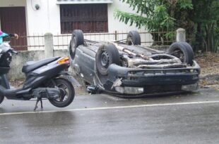 Moca.- Un aparatoso accidente ocurrió ayer en la carretera Moca-La Vega, donde un carro marca …