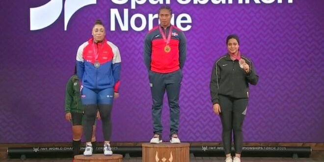 Yudelina Mejía consiguió la primera medalla de oro mundial para república dominicana en halterofilia, levantando 122 kg en arranque en la categoría 86 kg. También se adjudicó plata en el total (271 kg) y bronce en envión (149 kg), logrando una triple medalla histórica en Noruega.